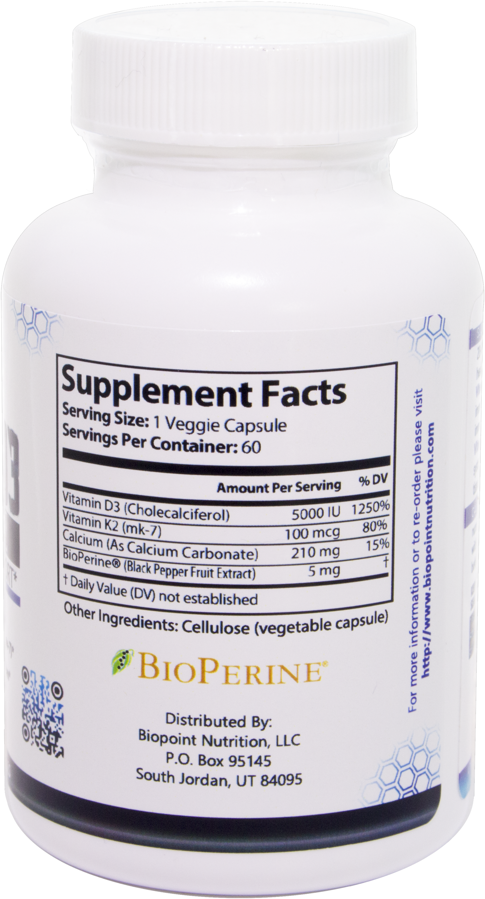 • 5,000 IU of Vitamin D3​- Get a hefty dose of Vitamin D with just one pill! With much of the American population being deficient in Vitamin D, heavy doses are often needed to build your levels back up to normal, especially in the winter, when sun exposure is not a great option.